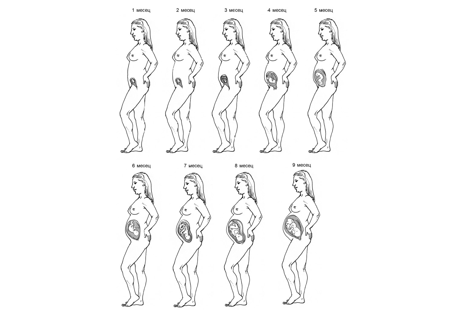 Разгледајте го растот на бебето според месеци, претставен на илустрацијата. Дополнително заедно со Вашето дете/ученик/роднина/корисник направете споредба на големината на бебето и стомакот на девојката во 1-2 месец со 7-9 месец, за да ја воочи разликата, односно дека постепено бебето расте во матката на девојката.