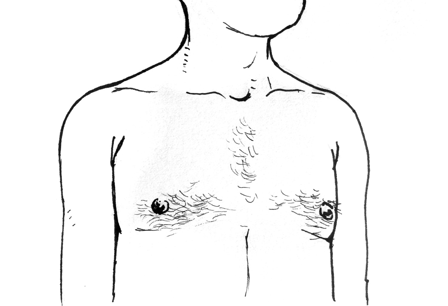 Покажете слика од Вашето дете/ученик/роднина/корисник кога бил бебе или дете, каде е гол, за да може да ја воочи разликата во однос на влакна на градите. Доколку Вашето дете/ученик/роднина/корисник се уште не го поминал тој развоен период, односно е пред пубертет, посочете или покажете слика од негова блиска машка личност, постара од него (татко, брат, родина, другар и сл.) која ги има промените на градите, опишани во текстот и прикажани на илустрацијата. Наведете дека и на неговите гради ќе му пораснат влакна.