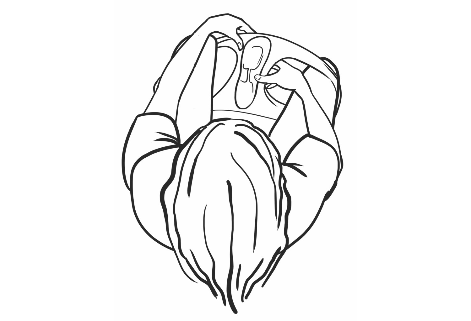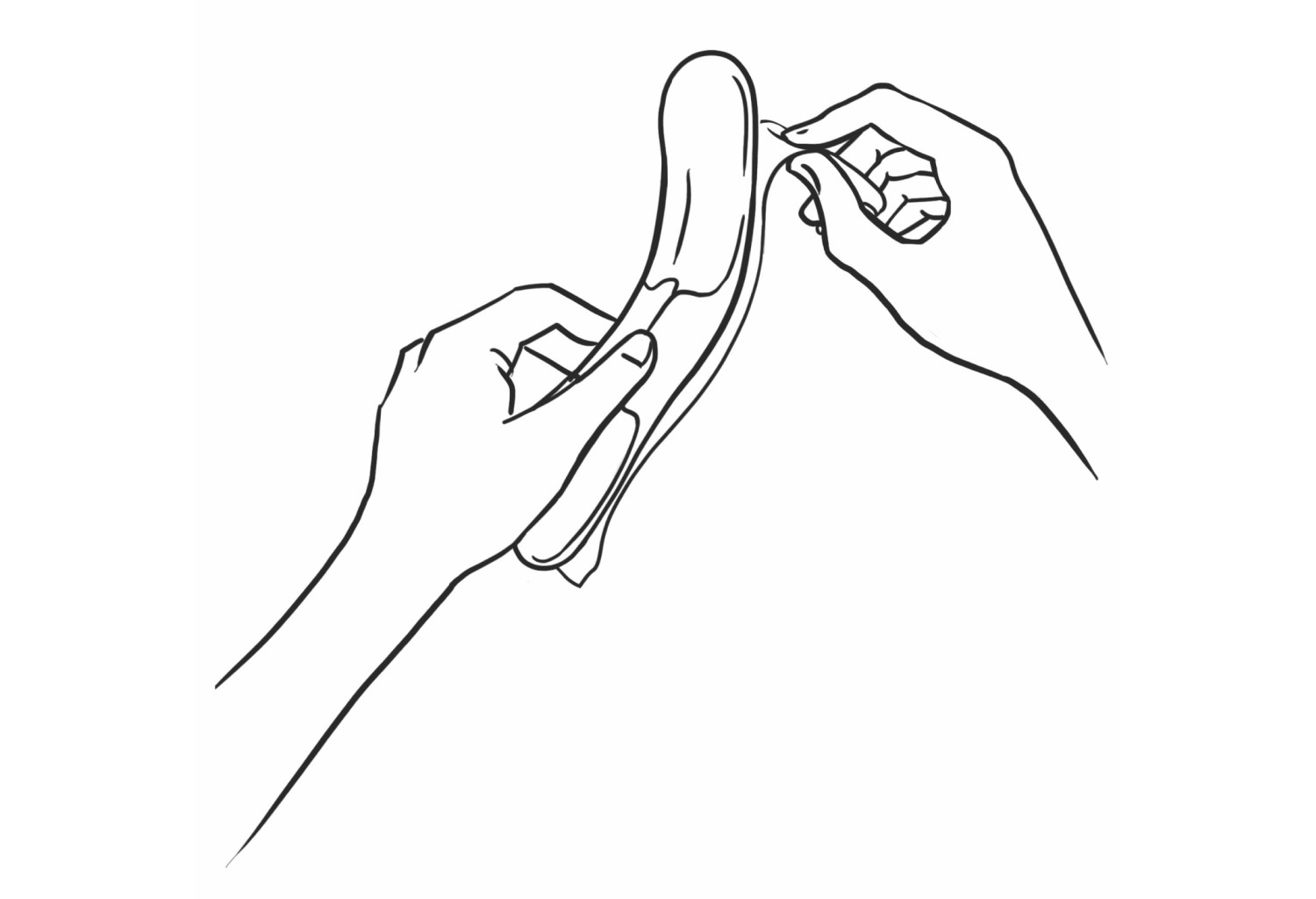 Наведете дека хартијата од влошката мора да се тргне, за да може влошката да се залепи на гаќите. Согласно можностите на Вашата ќерка/ученичка/роднина/корисничка опишете ја лепливата страна како „задна страна“ или „позади влошката лепи“ или „позади влошката е леплива“.Користете модел за демонстрирање (отворена влошка) за да го претставите движењето, односно одлепувањето нахартијата. Демонстрирањето можете да го изведете Вие или на Вашата ќерка/ученичка/роднина/корисничка да примените техника рака врз рака, каде со Вашите раце ги движите рацете на Вашата ќерка/ученичка/роднина/корисничка за таа да ја изведе активноста. На овој начин го поттикнувате моторното учење кај Вашата ќерка/ученичка/роднина/корисничка.