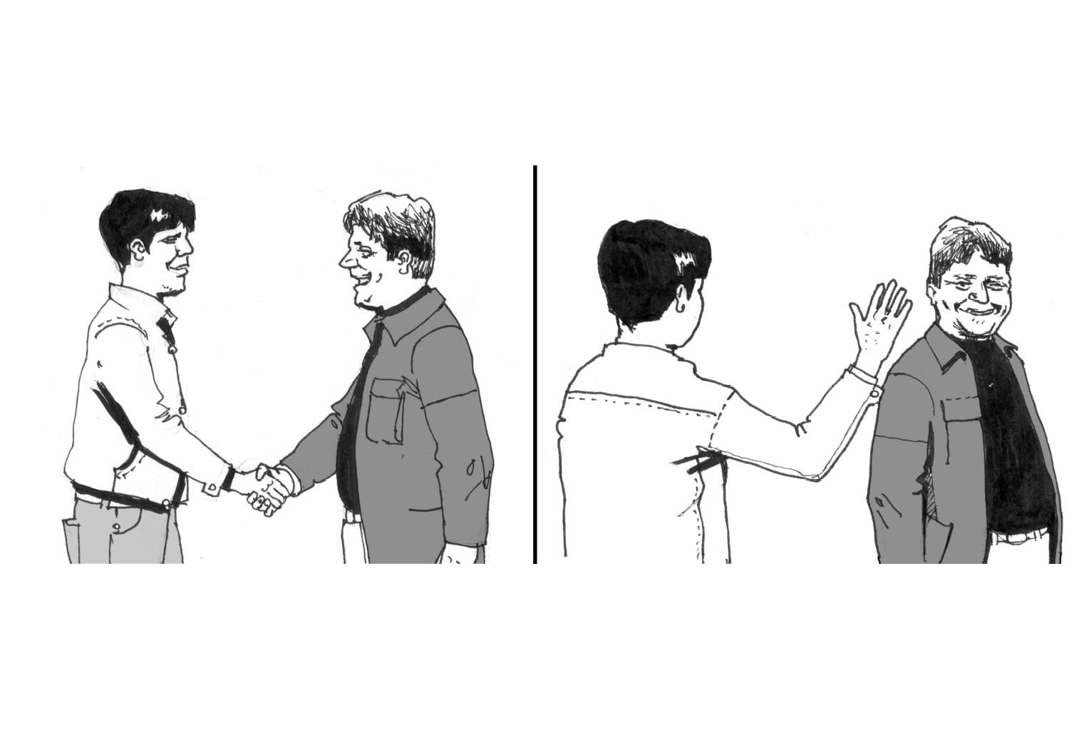 Објаснете дека секое поздравување со личност не мора да вклучува допир. Може да има само вербално поздравување и мавтање со рака.