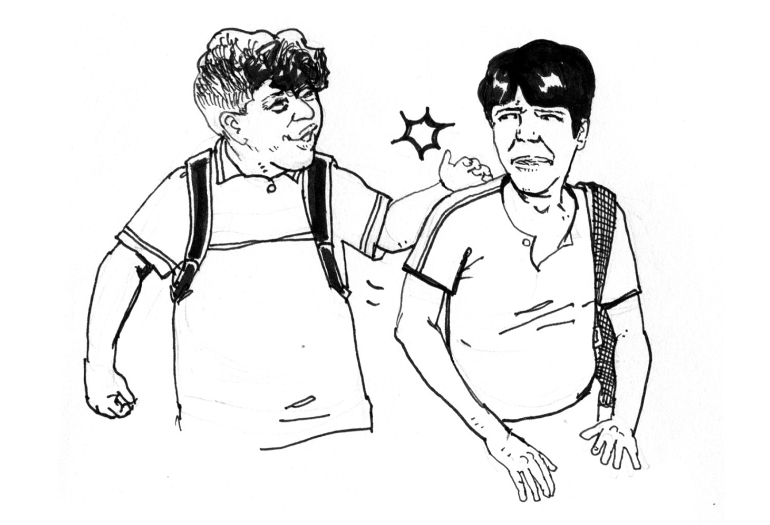 Опишете ја лицевата експресија (збунет, изненаден, лут и сл.) и поставеноста на телото (згрчен, се обидува да се одбрани и сл.) и нагласете дека токму од лицето и телото се гледа дали на момчето му е пријатно или непријатно.
