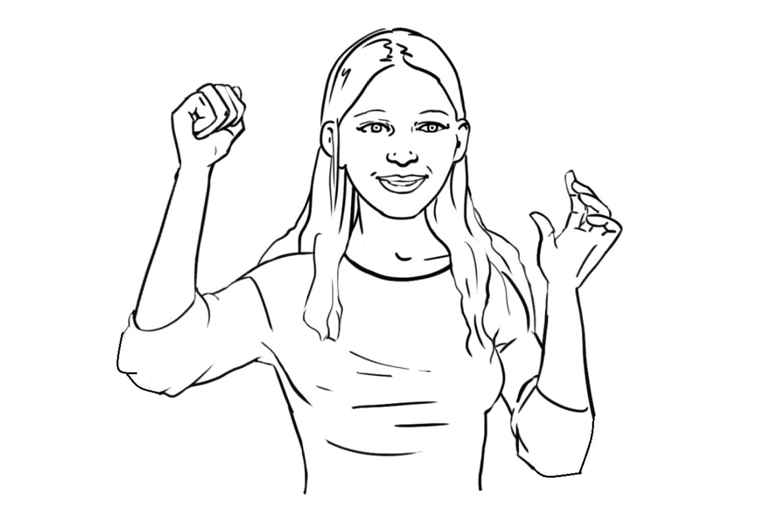 Опишете ја лицевата експресија на девојката претставена на илустрацијата. Побарајте од Вашата ќерка/ученичка/роднина/корисничка да каже како таа се чувствува кога ја јаде нејзината омилена храна и воедно да покаже каков израз на лицето има (како и изгледа лицето) кога ја јаде токму омилената храна/омиленото јадење. Предложените активности изведувајте ги пред огледало. Доколку сте во можност искористете природна ситуација кога опишаната активност Вашата ќерка/ученичка/роднина/корисничка ја практикува спонтано за да дискутирате како таа се чувствува.